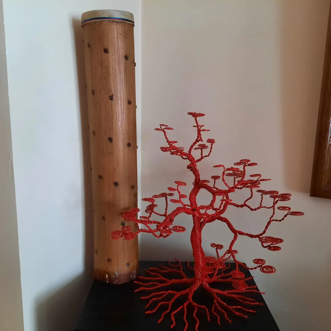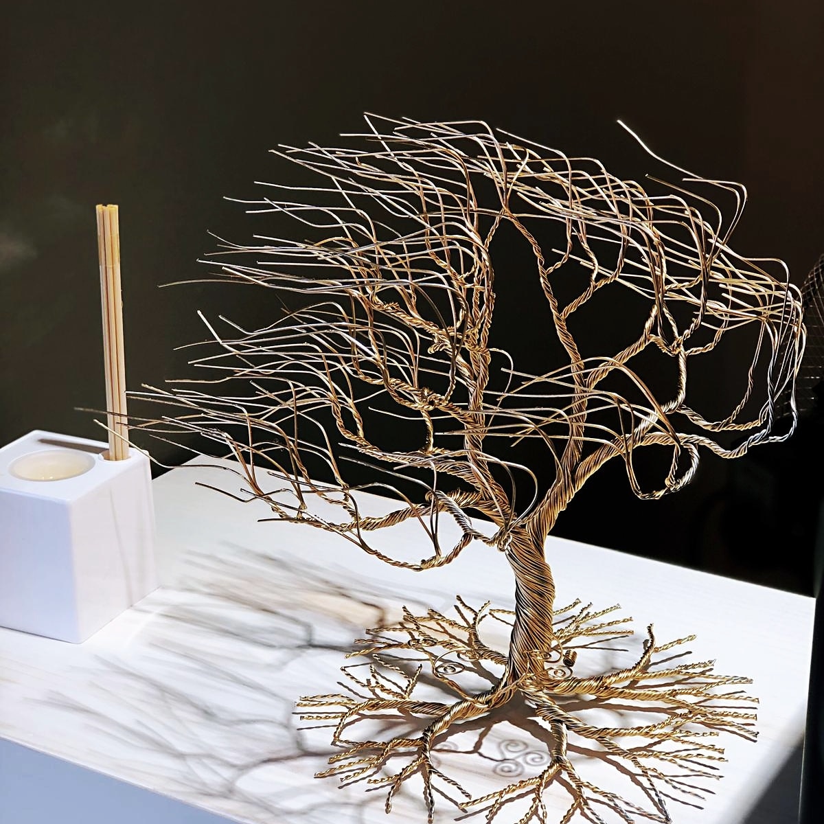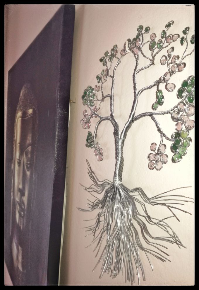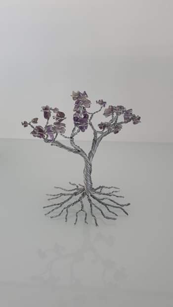 Arbol bonsái con piedras naturales amatistas, esta piedra favorece la creatividad y ayuda en la purificación de las energías